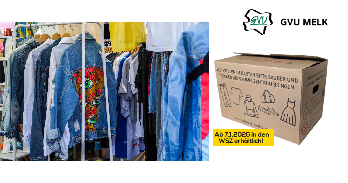 Ab Jänner 2026 wird das bestehende Angebot an Altkleider-Containern um eine zusätzliche, praktische Sammelvariante erweitert. In den WSZ des GVU Melk stehen künftig stabile Sammelkartons für gut erhaltene, aber nicht mehr benötigte Kleidungsstücke zur Verfügung. Gegen einem Pfand von 1 Euro können diese Kartons ausgeliehen, zuhause befüllt und wieder retourniert werden.