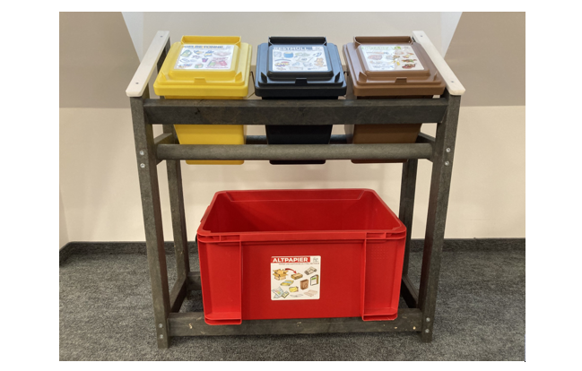 Die Stationen sollen benutzerfreundlich und aus nachhaltigen Materialien gefertigt sein. Das Gestell besteht dzt. aus 100 % Recyclingmaterial und wäre bspw. in einer Lehrlingswerkstatt einfach herzustellen. Die Abfallbehälter sind dzt. noch nicht aus Recyclingmaterial – hier suchen wir Unternehmen zur Fertigung der Behältnisse aus Kunststoffrestoffen (Spritzguß).